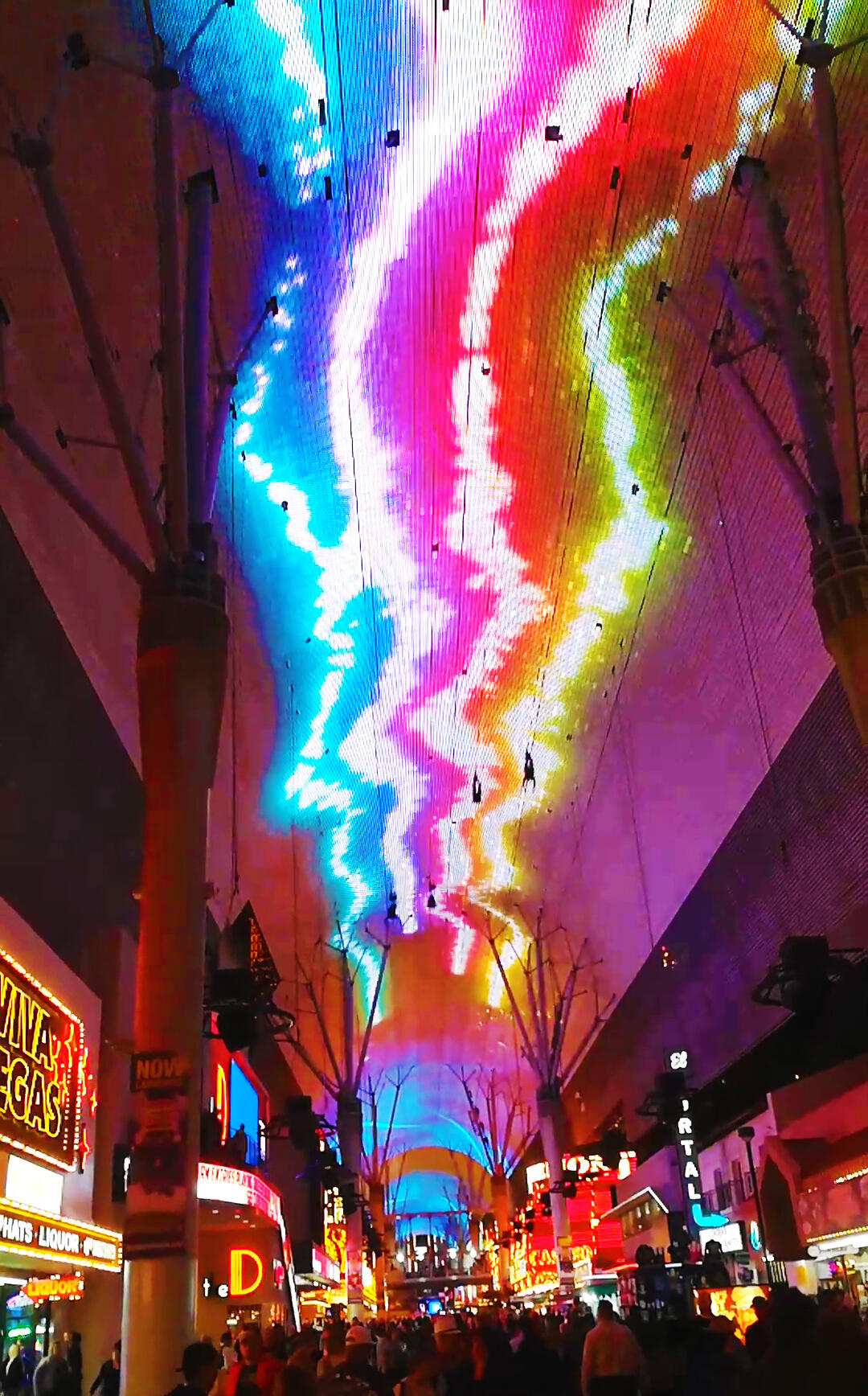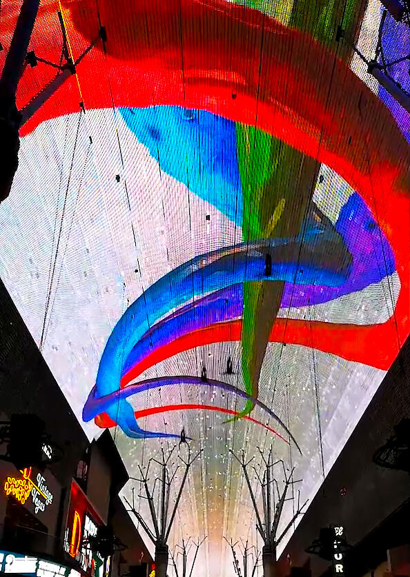 The SlotZilla Zipline sends guests flying beneath the Fremont Street canopy, accompanied by a series of synchronized motion graphics that travel the length of the street. These pieces weren’t tied to a theme or storyline—they were simple, high-energy visuals designed to mirror the motion of riders as they moved overhead.As the project lead, I created the full set of canopy animations and programmed the playback system that triggered them in real time. Each sequence was built around the average ride duration and launched automatically when the tower sent a start signal, ensuring a consistent, synchronized experience for every rider.