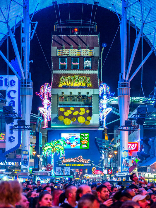 The SlotZilla Zipline sends guests flying beneath the Fremont Street canopy, accompanied by a series of synchronized motion graphics that travel the length of the street. These pieces weren’t tied to a theme or storyline—they were simple, high-energy visuals designed to mirror the motion of riders as they moved overhead.As the project lead, I created the full set of canopy animations and programmed the playback system that triggered them in real time. Each sequence was built around the average ride duration and launched automatically when the tower sent a start signal, ensuring a consistent, synchronized experience for every rider.